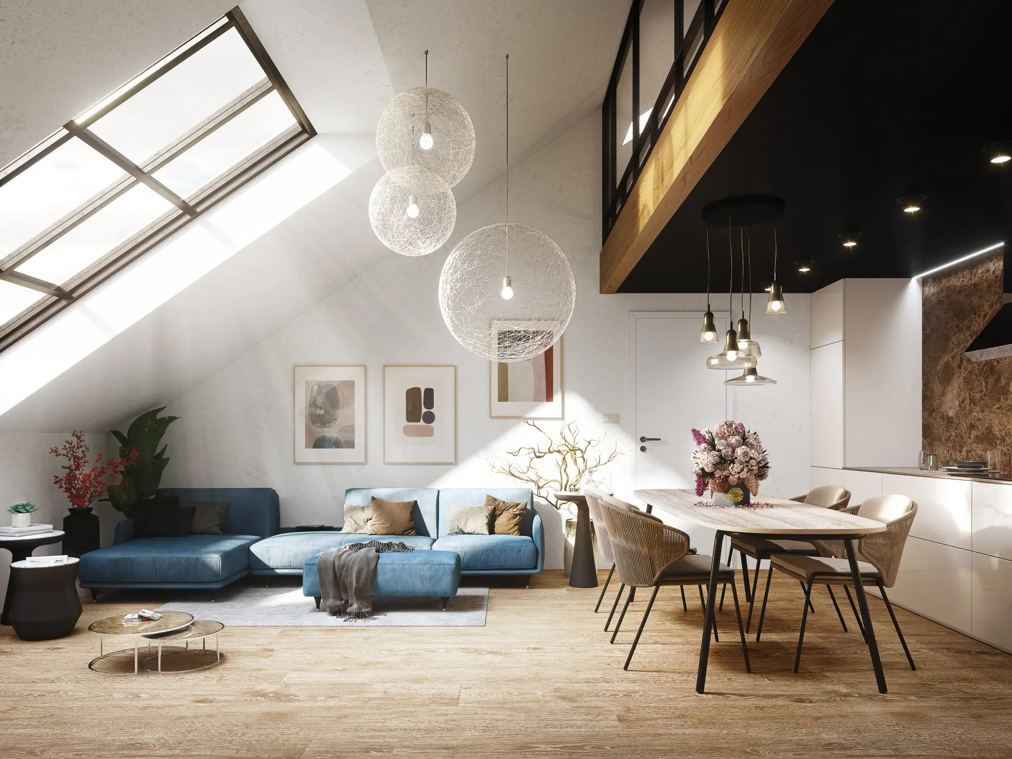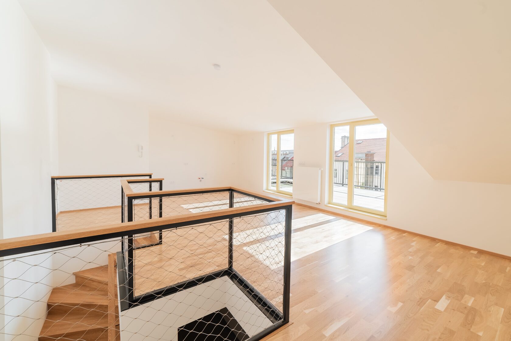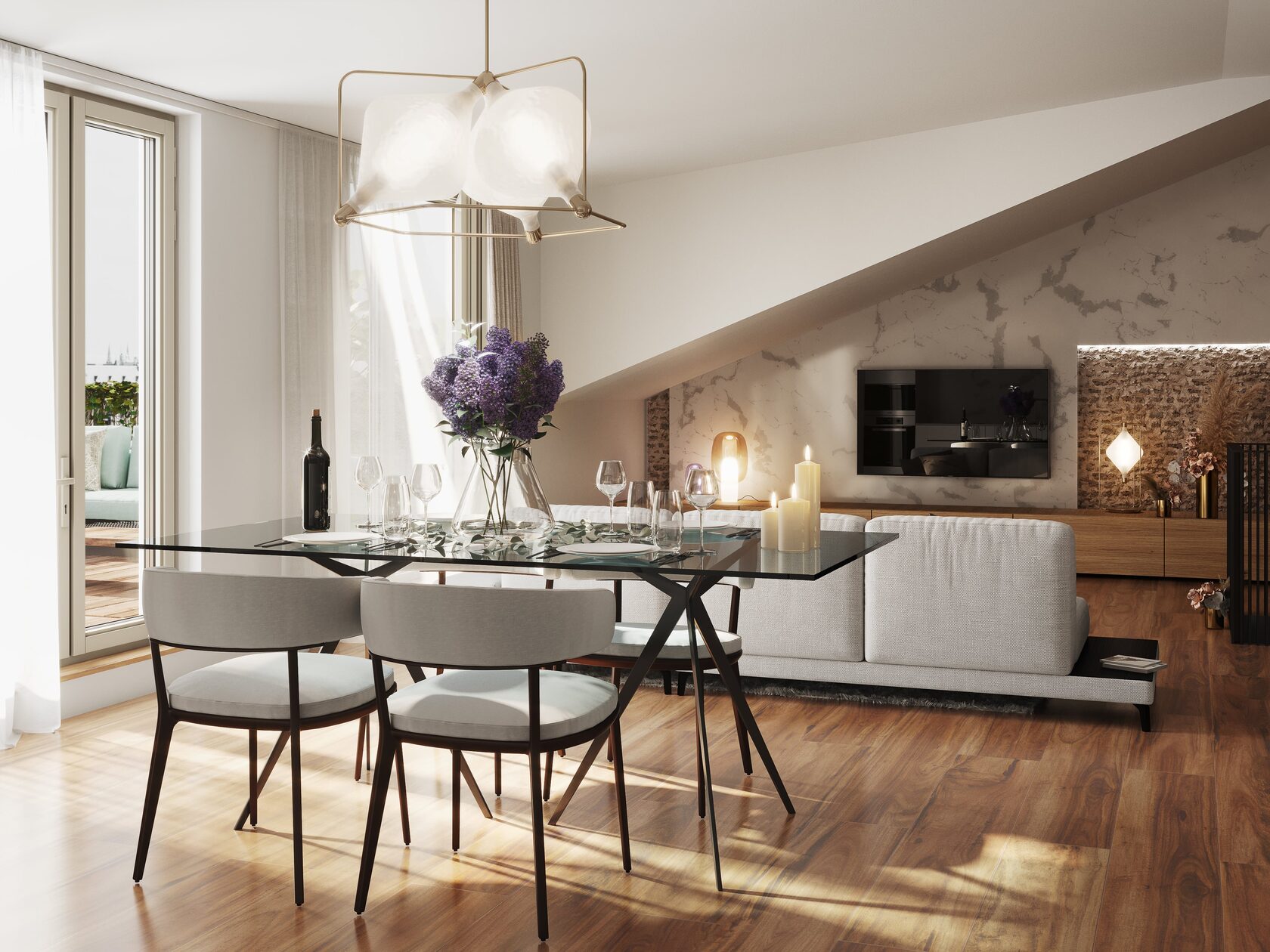 These duplex apartments with a terrace in Prague offer premium materials, elegant interiors, and truly unique views of the Prague skyline.