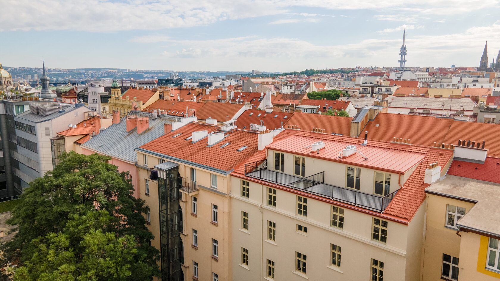 - 2 apartments measuring 94 m², each with a private rooftop terrace and views of Prague Castle and Petřín